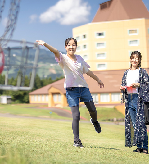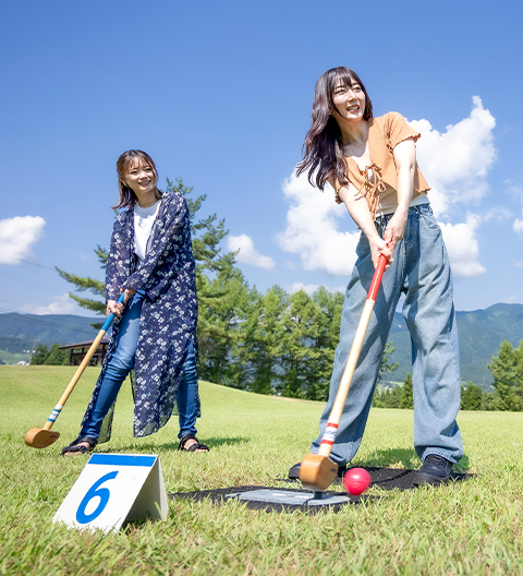 日本グラウンド・ゴルフ協会認定の本格的なコースを常設。専用のクラブ、ボールを使用して、ボールをクラブで打ち、ホールポストにホールイン(入って静止した状態)するまでの打数を競います。グラウンド・ゴルフはお子様から高齢者まで、誰でも楽しめるようにシンプルなルールとなっています。