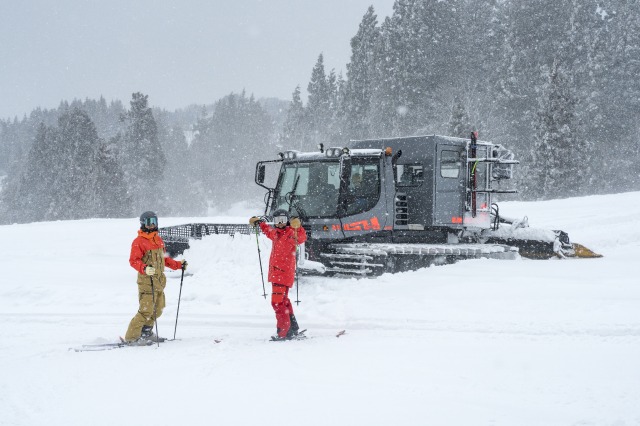 まだ誰も滑っていない圧雪されたばかりのゲレンデを滑走できる、