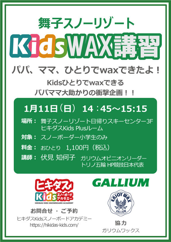 【1/11開催】ひとりでカンペキ!キッズwaxレッスン in 舞子スノーリゾート