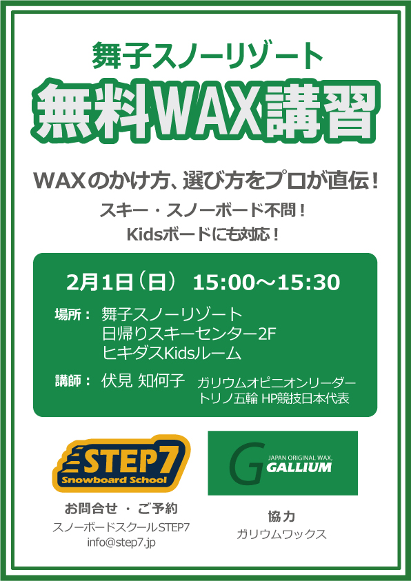 【2/1(日)開催】無料WAX講習会 in 舞子スノーリゾート